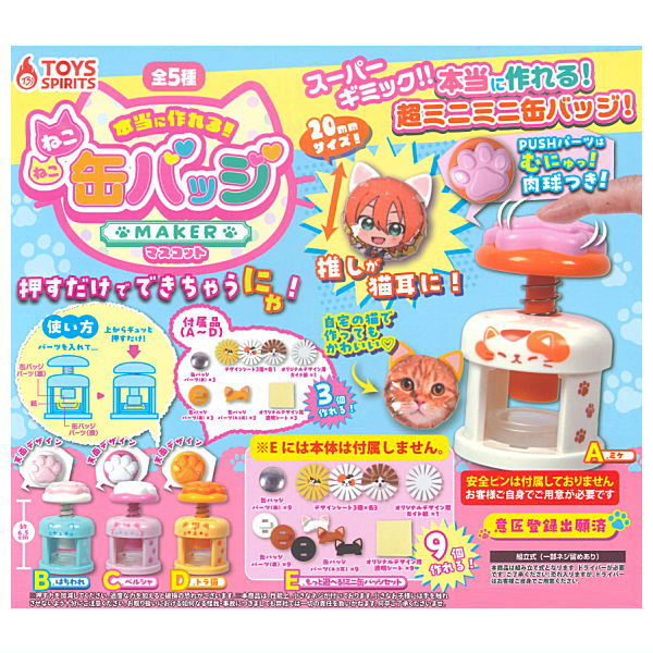 Real make! Neko-neko can badge maker mascot [All 5 type set(Full Complete)]